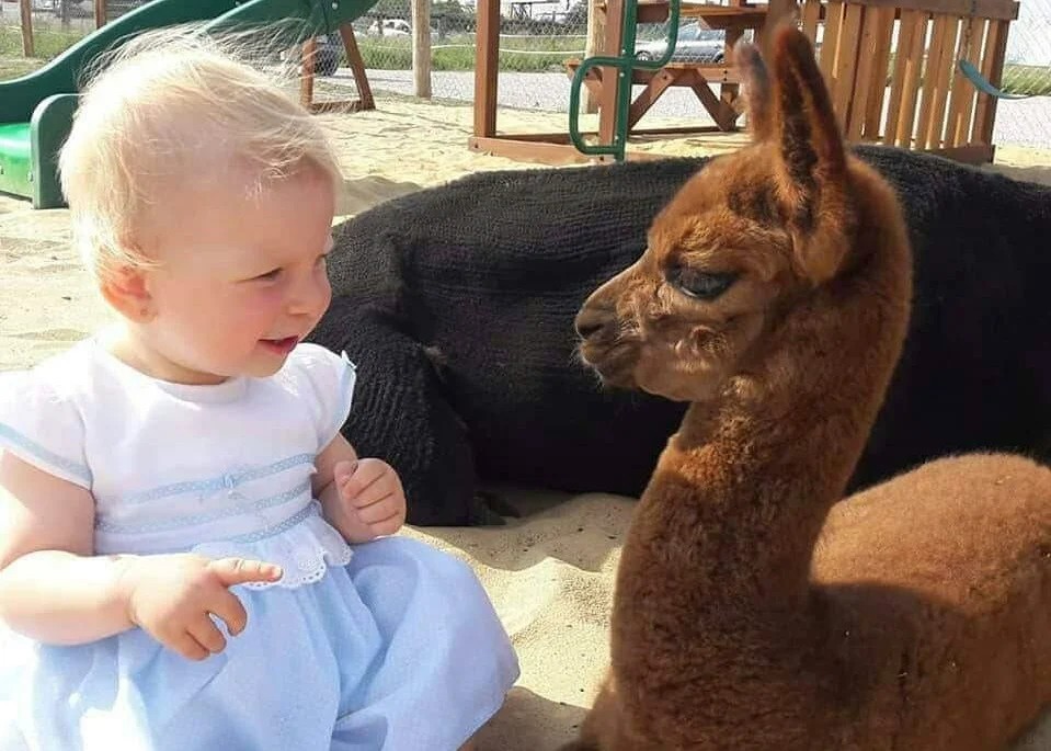 Alpaki to idealni towarzysze dla dzieci — łagodne, delikatne i pełne pozytywnej energii.