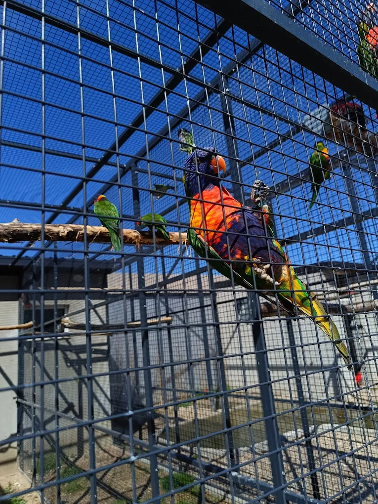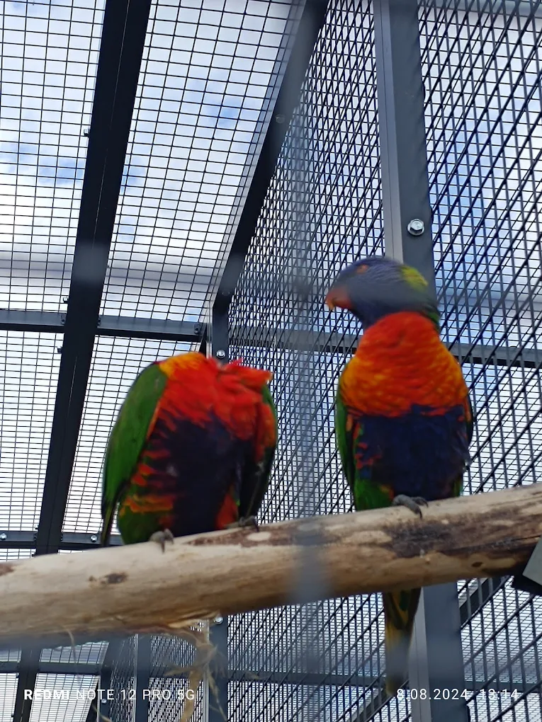 Lorysy tęczowe to mniejsze, niezwykle barwne papugi o żywym temperamencie. Ich pióra mają intensywne kolory, które sprawiają, że są jednymi z najbardziej efektownych ptaków w Mini Zoo.